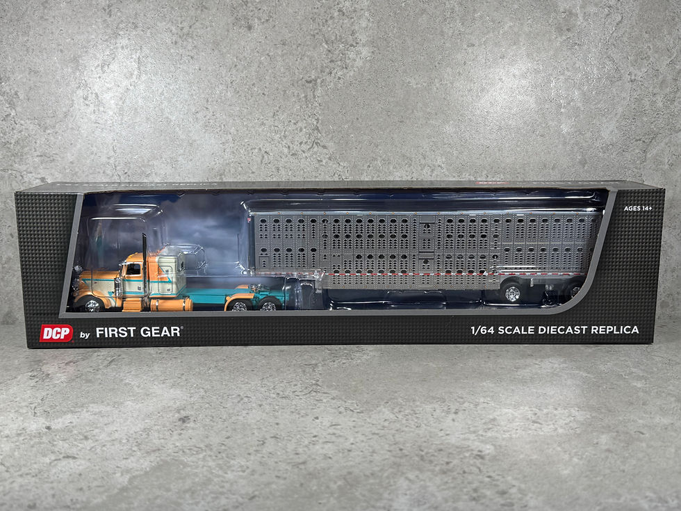 1/64 Peterbilt 389 w/ Wilson Livestock Trailer Peach/Teal